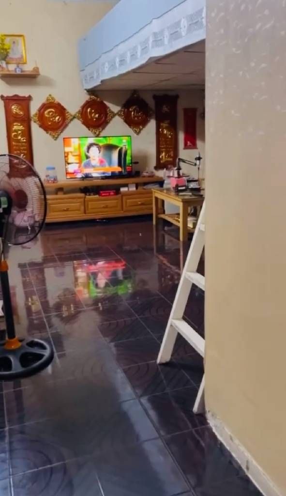 nhà có đua thêm ban công ra ngoài nên tổng sẽ là khoảng 46m2, Bên trong có gác rộng gần 20m2